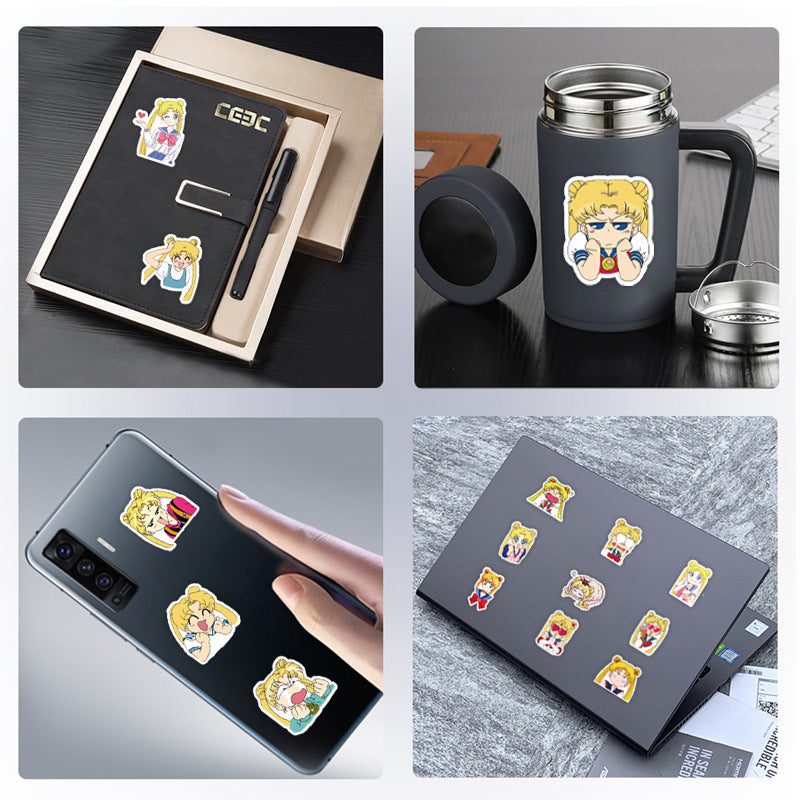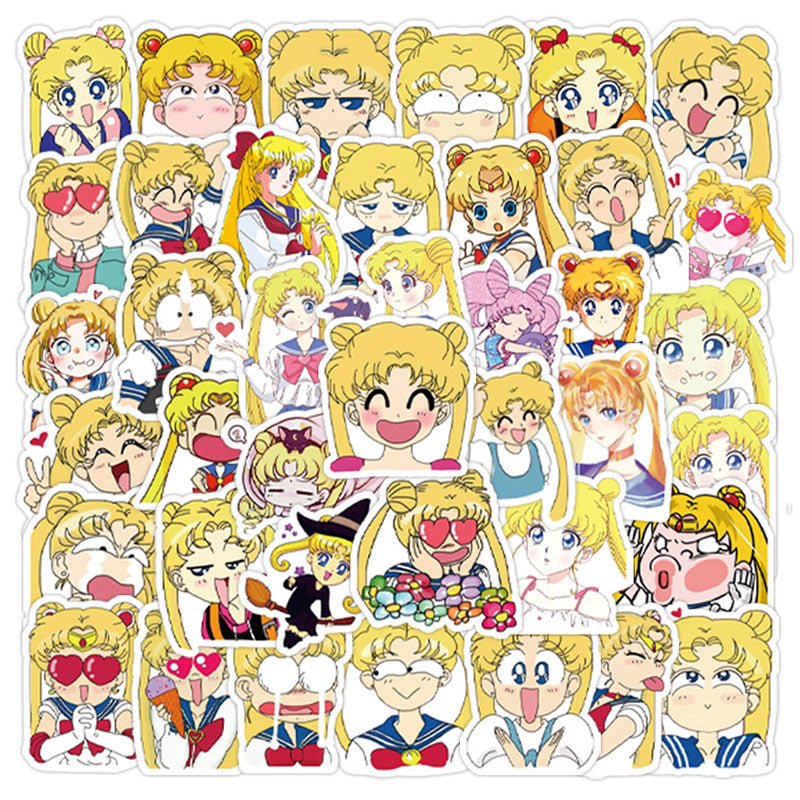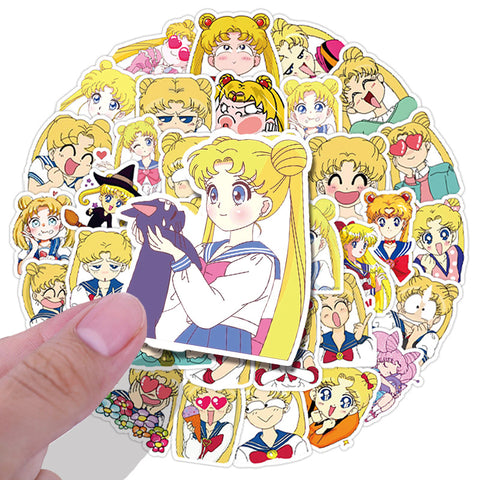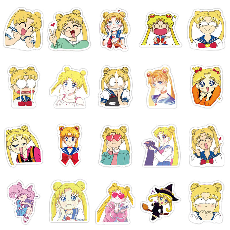40pcs Sailor Moon Sticker Cute Anime Cartoon Handbook Material Water Cup Phone Shell Handbook Sticker