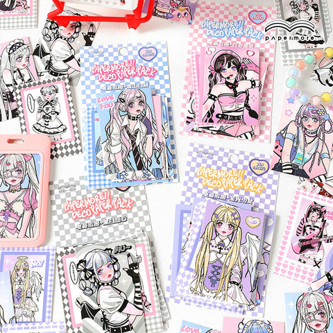 Matte Membrane Small Card Electric Song Girl Series Sweet Cool Cartoon Girl DIY Handbook Phone Case Material Card 4 Models