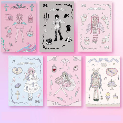 Milky Hearts Sticker Book Inner Page Low Saturation Sweet Sick Sweet Girl Character Decoration Sticker DIY Keychain Plate Hand Account Phone Case Sticker